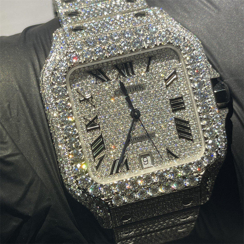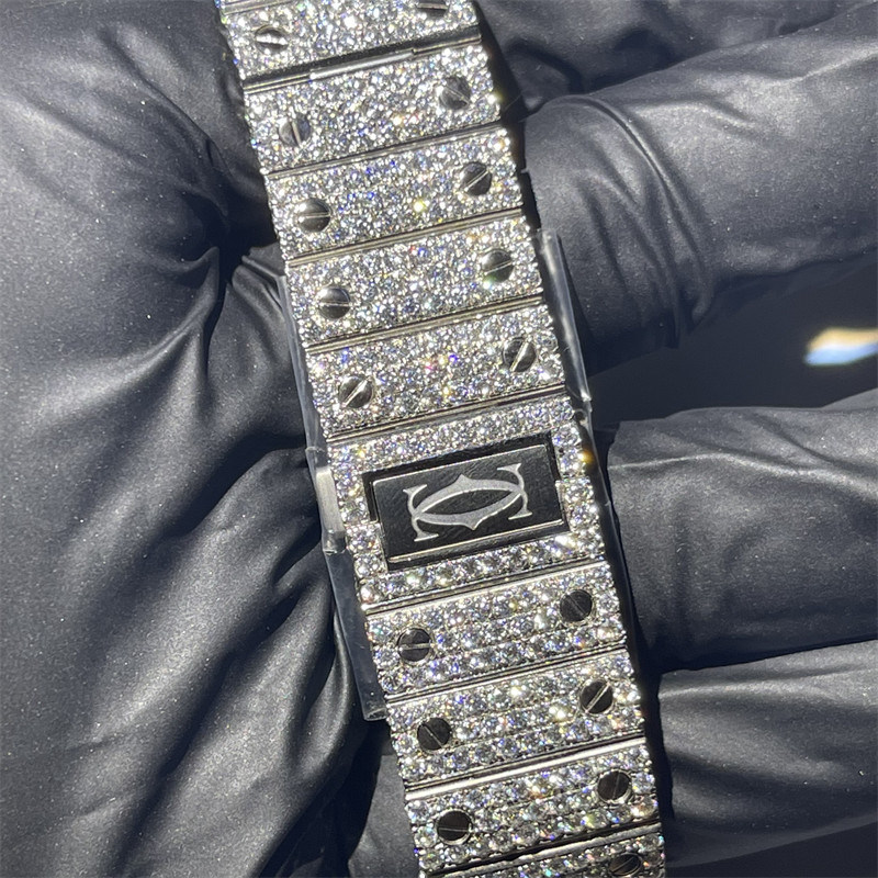 Het Beslagen Horloge van DEF VVS Moissanite | Santos Iced Out Moissanite Watch | Full Bussdown Watch